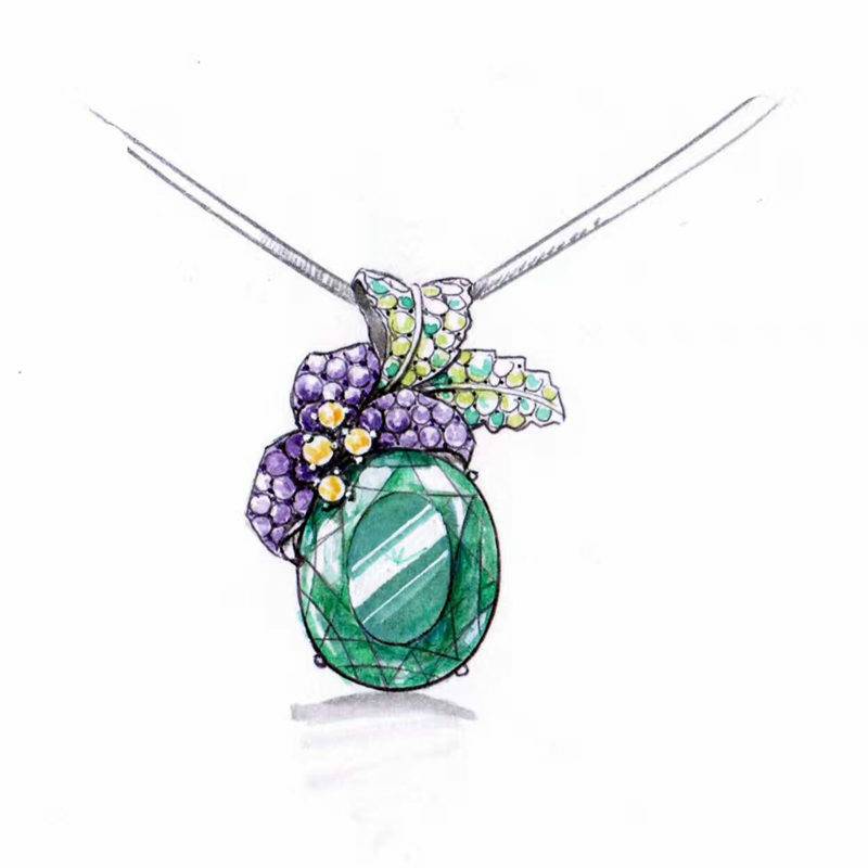 说明:主石为碧玺,副石钻石、紫水晶、葡萄石以及黄水晶。